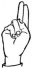 На ћирилици написано РУМЕНА ВИЦКОВИЋ састоји се из 14 слова [?]. Исписано ћириличном једноручном азбуком за глувонеме: